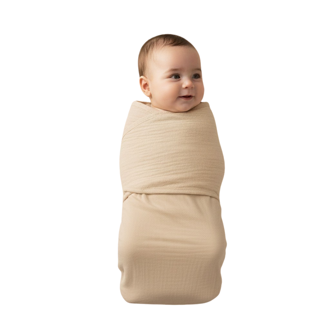 La couverture Cocon Ocre repose sur une conception textile intelligente : un enveloppement précis, des fibres respirantes et une structure étudiée pour accompagner naturellement le corps du bébé.