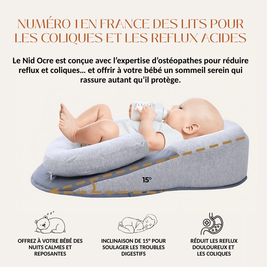 Oui, le NidOcre™ a été conçu avec des pédiatres pour soulager les reflux, limiter l’inconfort digestif et réduire les tensions du nourrisson. L’inclinaison de 15° aide le bébé à se reposer plus sereinement.